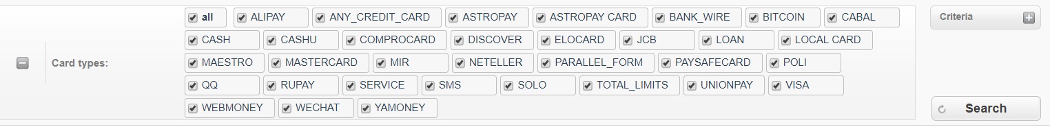 Pay369 Payment Gateway also displays statistics per card payment system, per currency, as well as per payment method.