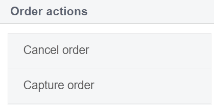 If Preauth has final successful status, the Merchant can initiate cancel which cancels the deduction and returns locked amount back to customer’s card or the Merchant can initiate capture which deducts the locked amount from customer’s card. To start a cancellation or capturing (deduction) of the transaction, go to the details of the relevant order. On the order details page, click the Cancel order button for cancellation of deducting and Capture order for deducting the locked amount.