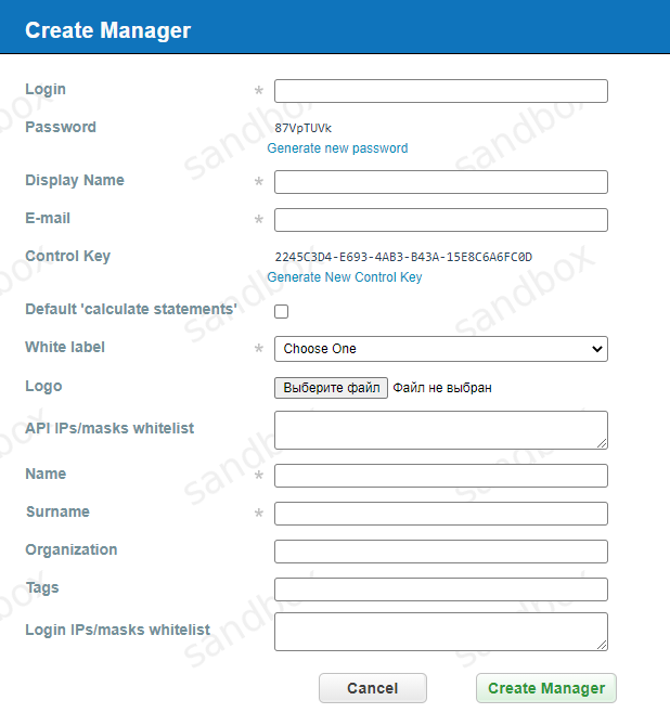 Pay369 platform contains integrated calculation system to reflect the tariffication between business process partners. Calculation happens on each level, from dealer to merchant. Bank fees are calculated for tariffication and settlement, but statements for settlement with the bank are not provided by the system. Instead, the system calculates statements per Merchant and indicates which exact amount should be received from the bank. Statement is individually generated for each manager or each merchant of this manager. Statement date is called business day. Statement for business day contains all projects for chosen manager. Statements will be calculated for manager if such option is enabled. If statement should be calculated, enable the Default calculate statements flag in manager account details. If this option is not enabled, statements setting in projects of exact manager will be unavailable and statements are not calculated.