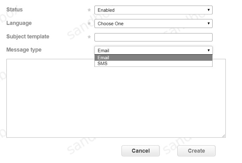Message templates can be used to send SMS or E-mail messages to customer after each successful transaction. Merchant must provide their message server credentials to Pay369 support manager in order to send such messages from Merchant address. Templates are created using the Template button. Example of filling the form: