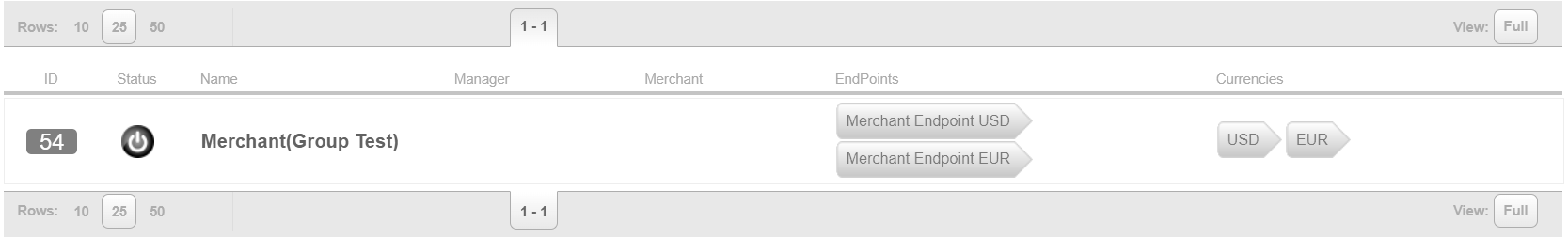 Endpoint group is an entity that combines several Endpoints or Master Endpoints with different currencies. The Endpoint Group simplifies the integration of a Merchant business to Pay369 Payment Gateway when working with multiple currencies. This screen allows to view configured Endpoint Groups and their IDs.